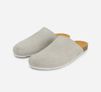 Our mules are an in-house design that is manufactured for us in Portugal that will age beautifully over time. The uppers are crafted of the same textured, nappy Italian suede that we've employed previously on our Padmore & Barnes collaborations. For extra traction, the mules are built on a cork footbed atop a Vibram mini ripple sole. The upper will stretch and mold to your foot as it breaks in. Made in Portugal. SIZING: We recommend taking your usual Birkenstock Boston size, but if your feet have a higher instep you may want to consider going up one size. What's most important when putting these mules on for the first time is to assess where your heel is hitting on the cork sole and how much room you have in the front of the shoe. The upper will stretch, so if the mule feels a little snug at first against your forefoot but you have room in the front, you can trust that it will mold to your foot with wear. Details - Italian calf leather - Leather lining - Suede footbed - Cork sole - Vibram mini ripple outsole - Made in Portugal