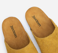 Our mules are an in-house design that is manufactured for us in Portugal that will age beautifully over time. The uppers are crafted of the same textured, nappy Italian suede that we've employed previoously on our Padmore & Barnes collaborations. For extra traction, the mules are built on a cork footbed atop a Vibram mini ripple sole. The upper will stretch and mold to your foot as it breaks in. Made in Portugal. SIZING: We recommend taking your usual Birkenstock Boston size, but if your feet have a higher instep you may want to consider going up one size. What's most important when putting these mules on for the first time is to assess where your heel is hitting on the cork sole and how much room you have in the front of the shoe. The upper will stretch, so if the mule feels a little snug at first against your forefoot but you have room in the front, you can trust that it will mold to your foot with wear. Details - Italian calf leather - Leather lining - Suede footbed - Cork sole - Vibram mini ripple outsole - Made in Portugal