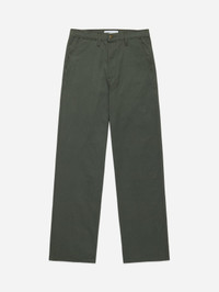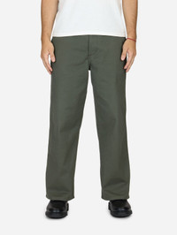 Our Officer Chino's relaxed silhouette is inspired by vintage US Navy chinos. Constructed with a slubby Japanese chino twill, these chinos have a wide leg fit, high rise, and generous thigh. The fabric starts off with a dry hand and subtle texture that becomes more apparent with wear and wash as the fabric softens. They are finished with corozo buttons and double needle stitching throughout. ATTENTION: Although this fabric is sanforized, it can shrink up to 1" on the first wash if hot washed and dried. With a cold wash and hang dry, shrinkage will be minimal. Please take potential shrinkage into account when getting measured for a hem. Details - 100% cotton chino twill woven in Japan - Corozo buttons - Coin pocket below waistband - Welt back pockets - Made in USA