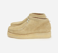 Our partnership with Padmore & Barnes, the original manufacturer of the P404 Boot (commonly known as the Wallabee) has yielded core styles that we are proud to stock. Our P404 Boot is crafted of a shaggy Italian suede with a nappy, textured hand that’s a noticeable departure from the classically smooth suede usually employed. Each shoe gets a tonal double stacked crepe sole and is finished with a simple tab on the back with our debossed logo. Made in Portugal. SIZING: Padmore & Barnes uses UK sizing - we recommend taking 1-1.5 down from your typical US sneaker size. Please note that the P404 is a wider F last, which might result in your correct size feeling roomier than what you're used to at first. When trying this shoe on, make sure there is no heel slippage and that the length of the shoe is correct to ensure you're in the right size. !details! Details - P404 Boot style - Italian suede upper - Double-stacked crepe sole - Handstitched moc toe - Leather lined - Made in Portugal