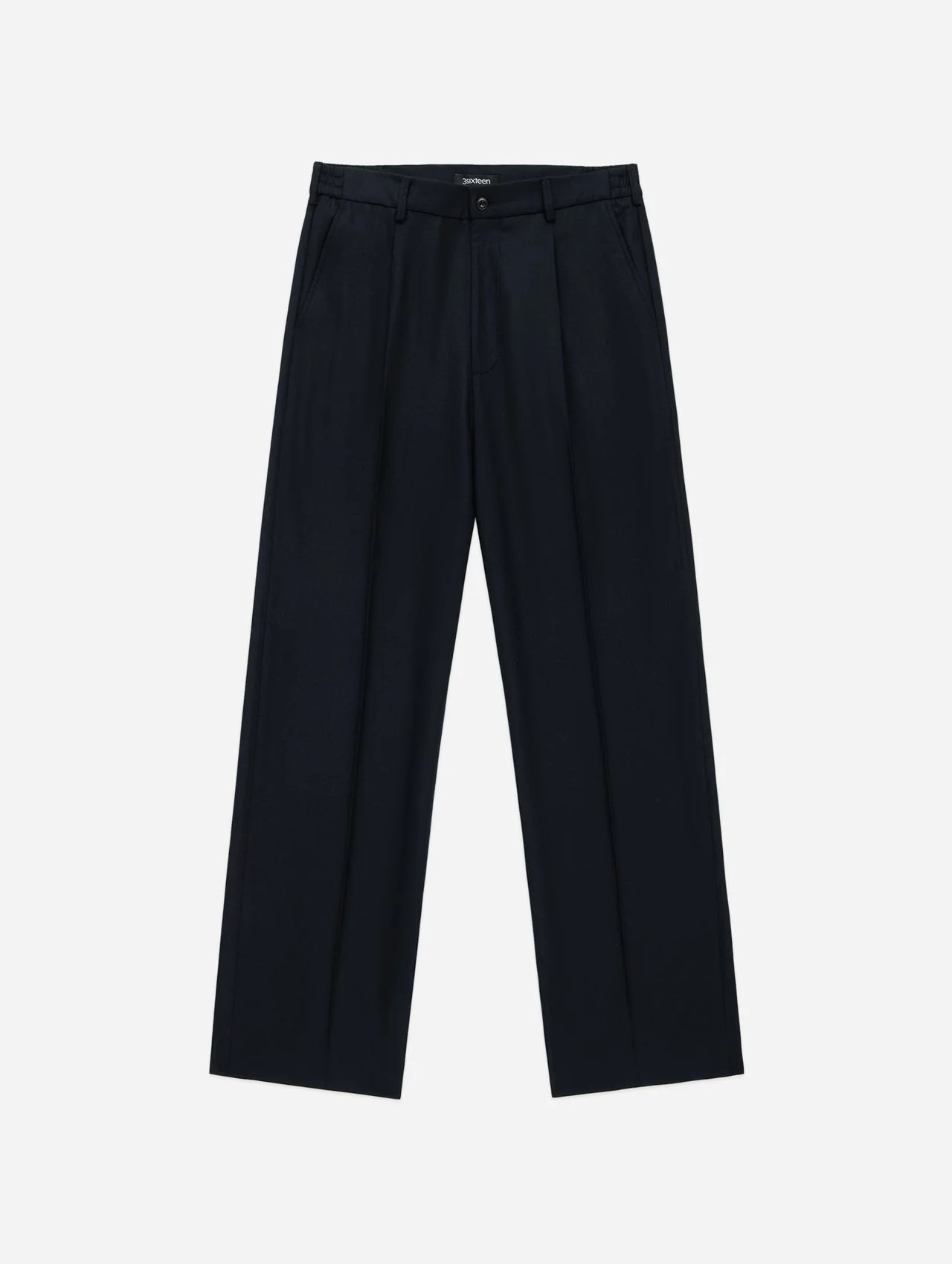 The Pleated Trouser is a more casual variant of the traditional suiting pant. The pant still features the usual center pressed front and traditional tailored details but the partially elasticated waistband allows for a variety of sizing options and increased comfort. Constructed in fine wool suiting cloth from Albano Morgado, the pants have unexpected heft while still draping beautifully. Details - 100% wool - Partially elasticated waistband - Straight fit - Made in Portugal