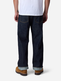 The RS-101x jean is cut and sewn in San Francisco, featuring a raw 12oz selvedge denim that is custom woven for us in Okayama, Japan by Kuroki Mills. Our Relaxed Straight cut is our widest fit, developed with more room in the thigh, a higher rise, and a wider leg opening than our other offerings. The cut is generous and comfortable, perfect with a break or a clean cuff. Each jean is given a light rinse to remove all shrinkage and make them incredibly comfortable from the first wear. The jean is finished with a hairy suede leather patch along with branded gunmetal YKK rivets and shanks. Made in USA. Sizing: This denim is sanforized and any further shrinkage is minimal. You can expect the waist to stretch about 1" over the first 30 wears. When new, the jeans should be snug around the waist without being uncomfortably tight. Details - 12oz indigo warp/white weft selvedge woven in Okayama, Japan - Custom gunmetal shanks and rivets - Selvedge fly and coin pocket detailing - Tan roughout leather patch - Made in USA