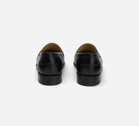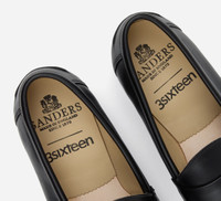 The Saddle Loafer is a custom makeup for 3sixteen by Sanders & Sanders, a heritage shoemaker based in the UK for over 150 years. We love the classic penny loafer, but decided to remove the traditional cut out on the saddle for a minimal look. Each pair is bench made in Sanders' Northampton factory. CARE: The matte finish of the leather makes for easy upkeep. Dirt and dust can be easily brushed off and cleaned off with a damp cloth with water only. SIZING: Please note that Sanders utilizes UK sizing; as such we recommend taking one size down from your usual sneaker size. Details - Black calf leather upper - Goodyear welted - Leather sole - Made in England
