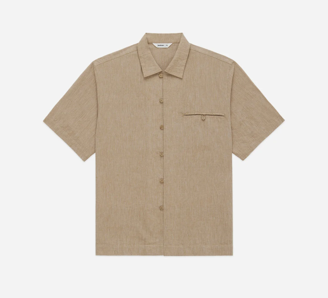 Short Sleeve Loop Shirt - Khaki Linen/Cotton