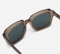 The Square SP-02 is a boldly proportioned silhouette informed by 1960’s-70’s classic shapes. Crafted by hand in Italy of 8mm bio-circular acetate, the construction of this frame shines in its combination of polished and raw finishes which give it depth and complexity. The legs are affixed with 5-barrel German steel hinges that sport functional triangular rivets and coated safety screws. Discreet branding comes by way of metallic logos on the outer temple tips, while the insides feature Japanese wave patterns laser etched in. Made in a family owned factory in Valdobbiadene, Italy. Details - 100% Italian bio-circular Sepia acetate - Polished face and temples - Raw, unfinished lens bevels, frame top and temple tops - 5-barrel German steel hinges with triangular rivet configuration - Temple tip logo branding - Anti-slip grooves on temple tips - Green nylon lens with 100% UV protection - Can be fitted with optical lenses by an optician - Frame width 145mm / Lens width 50.5mm / Bridge width 22.5mm - Handcrafted in Italy