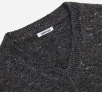 The V-Neck Vest is a layering piece thsat works just as well over a t-shirt and buttondown as it does under a shirt. This season, we chose a yarn using alpaca and wool fibers that are local to the our factory in Peru. The yarns have a rich charcoal color with a speckling of brown, white, and grey tones that, when knit, give the sweaters the look of Scottish tweed. The tweedy neps are accomplished by distributing contrasting fibers through the yarn irregularly - some cheaper yarns typically feature synthetics because they resist dye, but our mill accomplishes the effect using only using natural fibers. The vest is finished a ribbed armhole and hem. SIZING: Please note that our measurements are taken as the sweater is laid flat with no stretch. As is the case with all sweaters, ours will stretch and recover so please factor this in when choosing a size. Generally, we find that you can take the same size in this sweater that you do in our other tops. Details - 60% Alpaca/40% Wool blend - 1.5" collar ribbing width - Relaxed fit - Knit in Peru