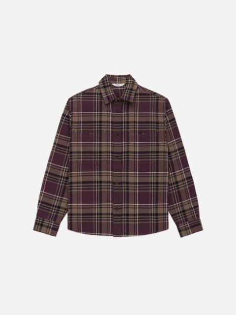 Featuring matching front chest pockets and a straight back yoke, the Utility Flannel is a classic workwear silhouette with a modern fit. This flannel body is slightly cropped and more generous in the chest than our Crosscut body. The fabric on this shirt is a midweight flannel that we developed with our mill that is heavily brushed on both sides. Ombre is a western check pattern that uses stripe gradients to create an almost hazy plaid effect; we decided to apply it to an unexpected hue this season. The shirt is finished with natural corozo fisheye buttons that reference vintage workwear trims. Details - 100% cotton - Garment rinsed - Corozo fisheye buttons - Made in Portugal