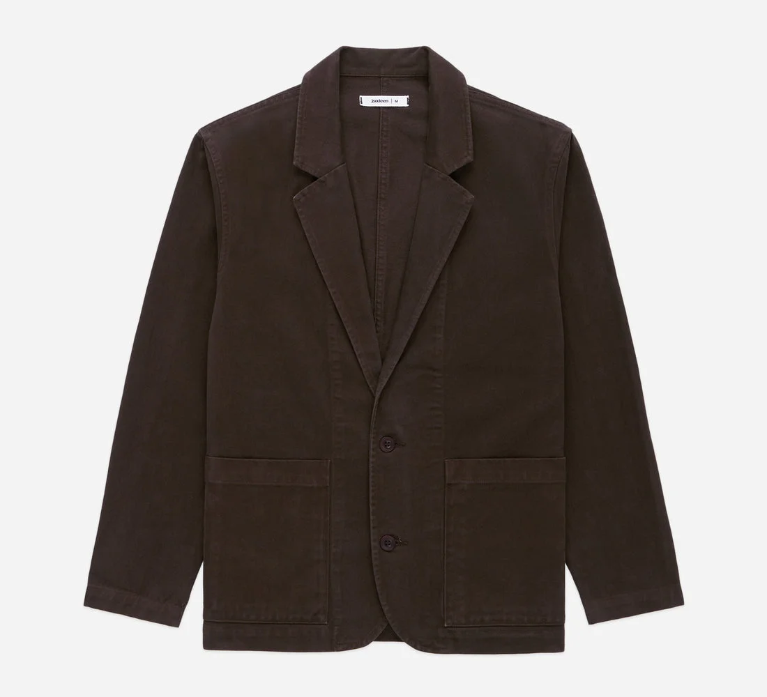 The Work Blazer is a casual take a blazer with workwear detailing, low button stance, wider lapel, and comfortable fit. It's crafted in a heavyweight chino fabric with a pronounced twill weave that after sewing is garment dyed and rinsed for a broken in feel. Finishing it off are two large front pockets, two interior pockets, and corozo buttons. Details - 100% Cotton - Button front closure - Two interior pockets - Made in Portugal