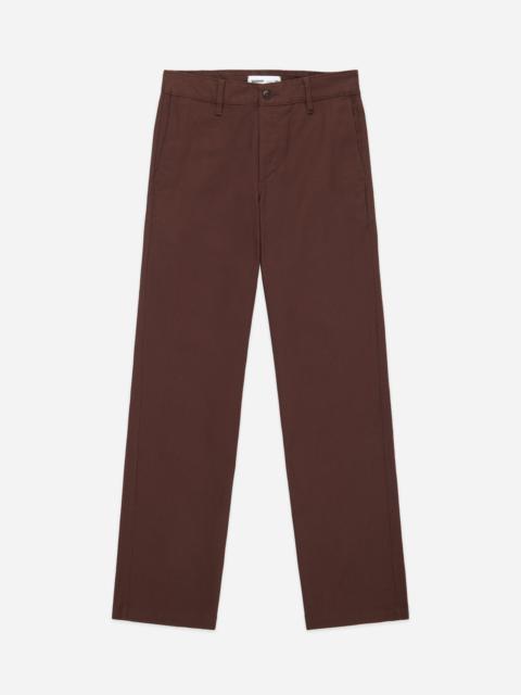 The Work Pant features a wide leg fit and high rise reminiscent of classic work pants. We chose a mid-weight chino fabric with a pronounced twill weave that is structured yet drapes well. After sewing, the pants are garment rinsed for a broken in feel. The pant is finished with double needle flat fell seams throughout for extra durability and tonal dyed corozo buttons. Made in USA. Details - 100% cotton chino twill fabric - Corozo buttons - Rear welt pockets - Made in USA
