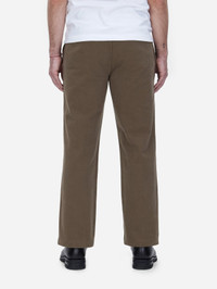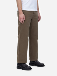 The Work Pant features a wide leg fit and high rise reminiscent of classic work pants. We chose a heavyweight chino fabric with a pronounced twill weave that is structured yet drapes well. After sewing, the pants are garment dyed and rinsed for a broken in feel. The pant is finished with double needle flat fell seams throughout for extra durability and tonal dyed corozo buttons. Made in Portugal. Details - 100% cotton chino twill fabric - Corozo buttons - Rear welt pockets - Made in Portugal