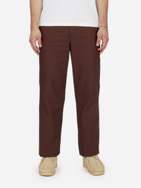 The Work Pant features a wide leg fit and high rise reminiscent of classic work pants. We chose a mid-weight chino fabric with a pronounced twill weave that is structured yet drapes well. After sewing, the pants are garment rinsed for a broken in feel. The pant is finished with double needle flat fell seams throughout for extra durability and tonal dyed corozo buttons. Made in USA. Details - 100% cotton chino twill fabric - Corozo buttons - Rear welt pockets - Made in USA