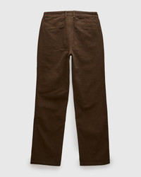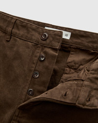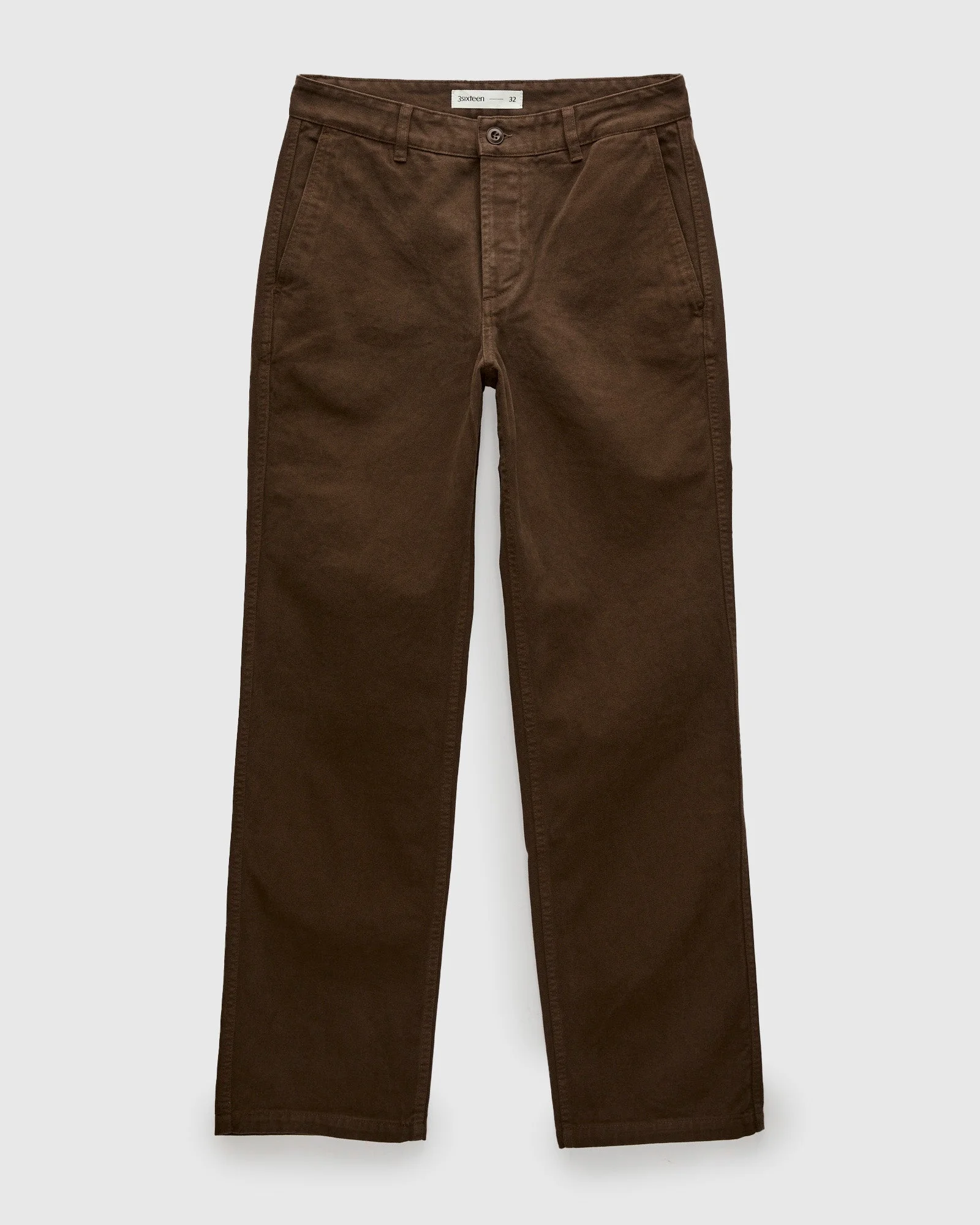 The Work Pants from 3sixteen feature a straight leg, high rise fit reminiscent of traditional workwear. Cut from a heavyweight cotton chino fabric, the pants showcase a pronounced twill with a structured drape. After sewing, the pants are garment dyed and rinsed, giving the fabric a soft, broken-in look and feel. Finished with natural corozo buttons, slant pockets at the waist, and welt pockets at the rear. - Straight leg, high rise fit - Medium-weight Japanese cotton twill fabric - Garment dyed - Canvas pocket bags - Urea buttons - Welt back pockets - Slant pockets at the waist - Trouser hem - 100% cotton - Made in Portugal - Please note: Due to the nature of this fabric hemming is not available for this item. Founded in 2003 in New York City's Lower East Side, 3sixteen aims to create collections that demonstrate longevity in both design and construction by producing clothing that will hold up to extensive wear and remain relevant season after season. The brand's aesthetic is built upon utilitarian pieces from decades past that are updated with premium materials and modern fits. The collection is handsewn in the USA of the finest fabrics, ensuring that every piece has a compelling story to tell.