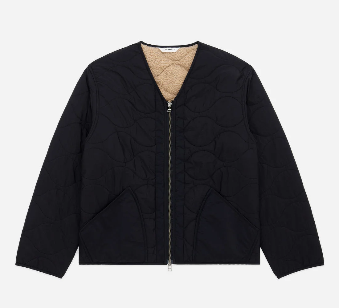 Our Liner Jacket is inspired by vintage military liners. The body mirrors that of a classic M-65 liner with classic onion quilting. Two hand warmer pockets have been added to the lower fronts for added functionality. The nylon face provides protection from the elements while a high pile sherpa interior provides comfortable wear and warmth. A YKK double zipper rounds out the piece. PLEASE NOTE: Sale items are final sale and are not eligible for returns. Details - 100% Nylon - YKK double zipper - Sherpa lining - Made in India