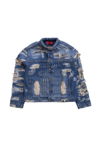 424 424 Collection Repaired Trucker Jacket Blue