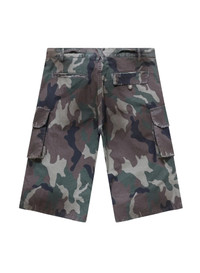 424 Camo Bermuda shorts feature a stonewashed construction paired with distressing that gives an effortlessly worn-in feel. Functional cargo pockets offer practicality, while the drawstring waistband allows fit adjustment. The green camo color-way brings contemporary edge to a versatile silhouette built for both style and utility. Relaxed fit. DETAILS Ripstop fabric 424 Distress patch at back Cargo pockets Branded embossed hardware Drawstring tie at waist Heavy stonewash finish Material: 100% Cotton Made in Italy Product codes: - SKU: ESSX/424/AW25/FFF5MT39APTF001C01/Green/48 - UPC: 1403558059466