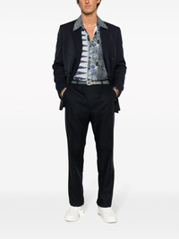 asymmetric button-fastening wide-leg trousers Highlights - Navy blue - Virgin wool - Cotton - Elasticated waistband - Belt loops - Asymmetric front button fastening - Concealed front fastening - Two side inset pockets - Rear jetted pocket - Wide leg - Straight hem Made in Italy Composition Outer: Virgin Wool 100% Lining: Cotton 100% SIZE & FIT Model measurements Height 6 ft 2 in(1.89 m) Bust/Chest 37.79 in(96 cm) Hips 37 in(94 cm) Waist 29.92 in(76 cm) FittingInformation Designed for a straight-leg, allowing for an unrestricted and comfortable fit over the leg Made from a midweight non-stretch fabric This piece fits true to size – take your usual size Washing instructions Dry Clean Only
