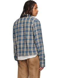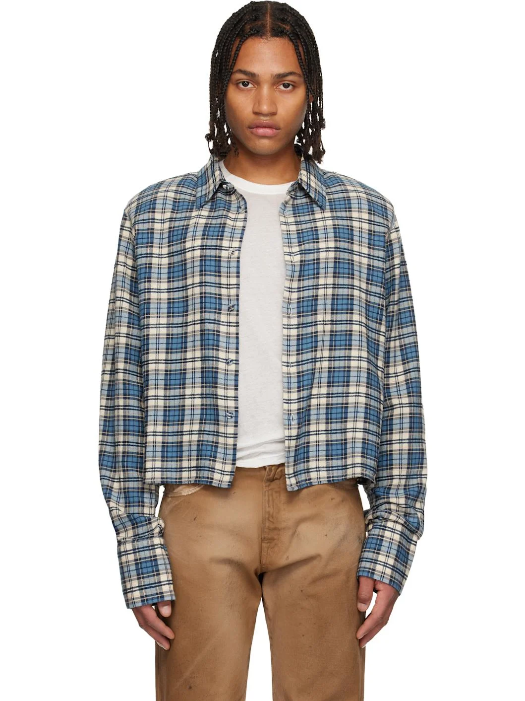 Blue & Off-White Shoulder Pad Cropped Shirt