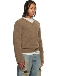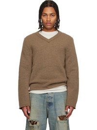 Knit virgin wool-blend sweater. · V-neck · Raw edge at hem and cuffs Supplier color: Brown 72% polyester, 28% virgin wool. Made in Italy 252010M206000
