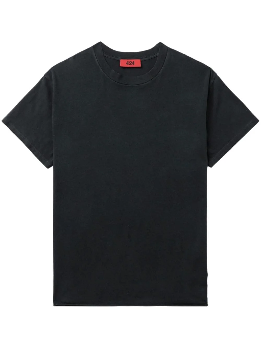 round-neck short-sleeve T-shirt Highlights - Black - Cotton blend - Lightweight jersey - Washed - Round neck - Short sleeves - Straight hem Made in Italy Composition Cotton 95%, Elastane 5%