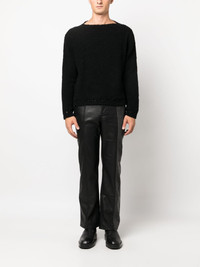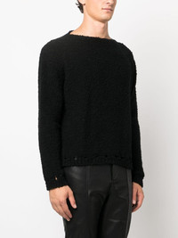 crinkled slash-neck jumper Highlights - Black - Virgin wool blend - Logo patch to the rear - Crinkled finish - Slash neck - Long sleeves - Ribbed cuffs and hem - Straight hem Made in Italy Composition Virgin Wool 84%, Polyester 16% SIZE & FIT Model measurements Height 6 ft 2 in(1.89 m) Bust/Chest 38.97 in(99 cm) Hips 38.18 in(97 cm) Waist 32.28 in(82 cm) Measurement CHEST 51.96 in(132 cm) SLEEVE LENGTH 23.22 in(59 cm) Shoulder Width 20.86 in(53 cm) LENGTH 22.04 in(56 cm) FittingInformation Designed for a relaxed fit, this piece allows for comfort and movement when worn Made with a midweight knit, this piece offers some stretch This piece fits true to size – take your usual size Washing instructions Hand Wash