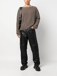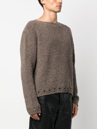 cutout-detail fleece-texture jumper Highlights - Light brown - Virgin wool blend - Fleece texture - Cut-out detailing - Logo patch to the rear - Boat neck - Long sleeves - Ribbed cuffs - Straight hem Made in Italy Composition Virgin Wool 84%, Polyester 16% SIZE & FIT Model measurements Height 6 ft 1 in(1.86 m) Bust/Chest 37.4 in(95 cm) Hips 36.22 in(92 cm) Waist 29.52 in(75 cm) Measurement CHEST 55.9 in(142 cm) SLEEVE LENGTH 24.8 in(63 cm) Shoulder Width 24.4 in(62 cm) LENGTH 25.19 in(64 cm) FittingInformation Designed for a relaxed fit, this piece allows for comfort and movement when worn Made with a midweight knit, this piece offers some stretch This piece fits true to size – take your usual size Washing instructions Hand Wash