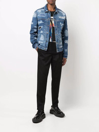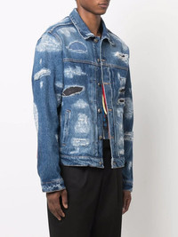 distressed denim jacket blue cotton blend distressed finish logo patch to the rear classic collar front button fastening slip pockets to the sides long sleeves Made in Italy Composition Lining: Cotton 65%, Polyester 35% Outer: Cotton 100% SIZE & FIT Model measurements Height 6 ft 2 in(1.89 m) Bust/Chest 35.43 in(90 cm) Hips 36.61 in(93 cm) Waist 28.74 in(73 cm) Washing instructions Machine Wash