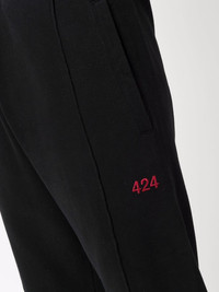 embroidered logo track pants black cotton embroidered logo to the front elasticated drawstring waistband two side inset pockets straight leg Imported Composition Cotton 100% SIZE & FIT Model measurements Height 6 ft 1 in(1.86 m) Bust/Chest 35.43 in(90 cm) Hips 35.43 in(90 cm) Waist 29.92 in(76 cm) FittingInformation This piece fits true to size. We recommend you get your regular size Cut for a relaxed fit Made with a mid-weight fabric Washing instructions Machine Wash