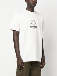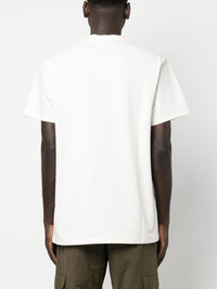 graphic logo print T-shirt white cotton blend graphic logo print to the chest crew neck short sleeves straight hem Imported Composition Cotton 60%, Polyamide 35%, Elastane 5% SIZE & FIT Model measurements Height 6 ft 2 in(1.87 m) Bust/Chest 36.41 in(92.5 cm) Hips 37 in(94 cm) Waist 29.52 in(75 cm) FittingInformation This piece fits true to size. We recommend you get your regular size Cut for a relaxed fit Made with a mid-weight stretch fabric Measurement CHEST 38.58 in(98 cm) LENGTH 29.52 in(75 cm) SLEEVE LENGTH 8.26 in(21 cm) Shoulder Width 16.53 in(42 cm) Washing instructions Hand Wash