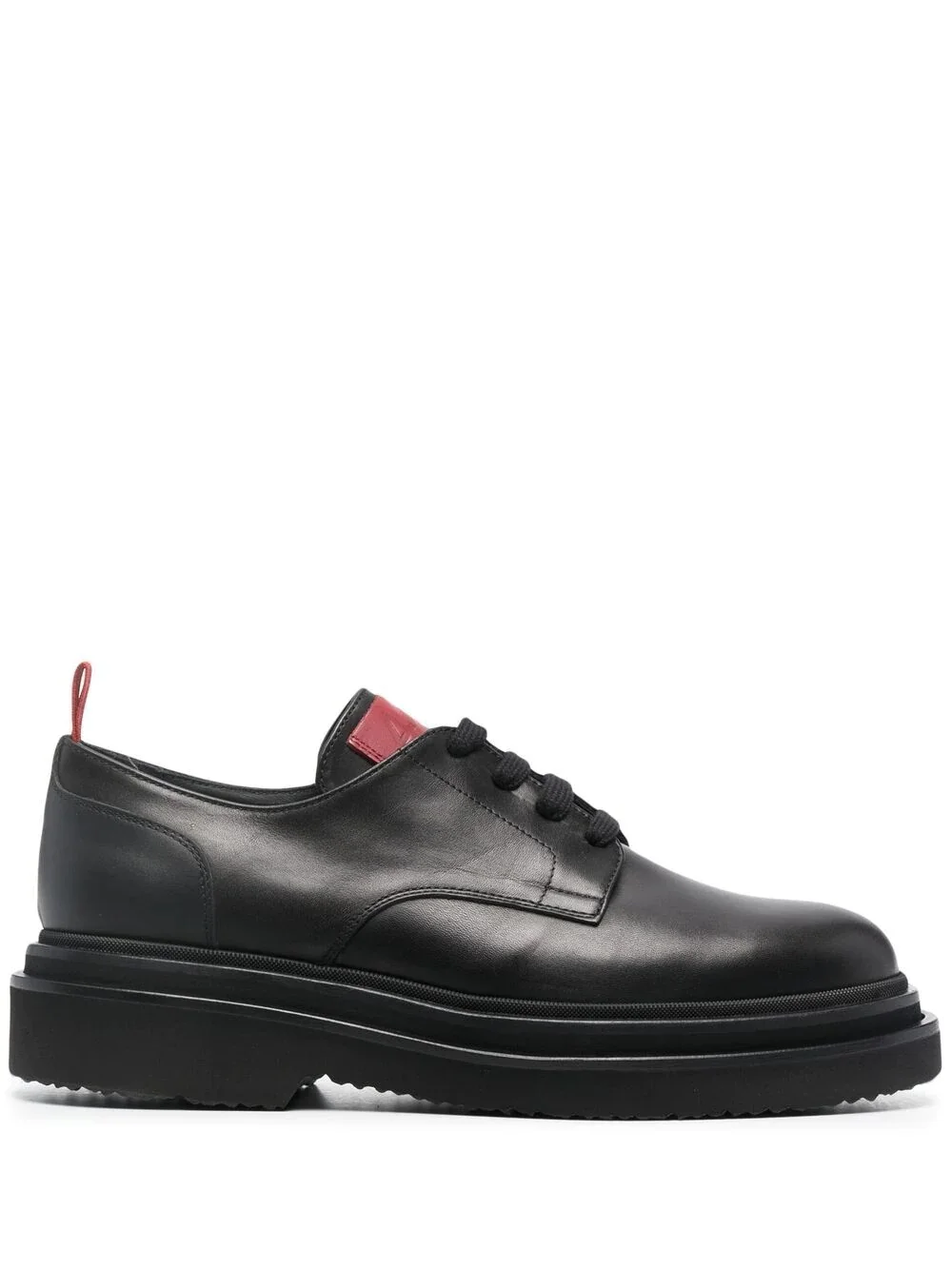 leather Derby shoes Highlights - Black/red - Leather - Logo patch at the tongue - Tonal stitching - Almond toe - Pull-tab at the heel - Branded insole - Low heel - Flat rubber sole Made in Italy Composition Outer: Leather 100% Lining: Leather 100% Sole: Rubber 100% SIZE & FIT Measurement HEEL 1.77 in(4.5 cm) Sole height 1.18 in(3 cm)