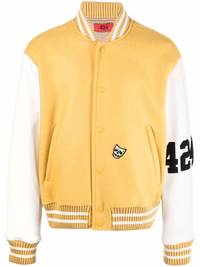 logo-detail bomber jacket bright-yellow/off-white lambskin-virgin wool blend logo patch to the side long sleeves elasticated cuffs elasticated hem Made in Italy Composition Outer: Virgin Wool 100%, Lamb Skin 100% Lining: Cupro 100%, Polyester 100% SIZE & FIT Model measurements Height 6 ft 2 in(1.88 m) Bust/Chest 36.61 in(93 cm) Hips 35.82 in(91 cm) Waist 27.95 in(71 cm) FittingInformation This piece fits true to size. We recommend you get your regular size Cut for a loose fit Made with a mid-weight non-stretch fabric Washing instructions Specialist Cleaning