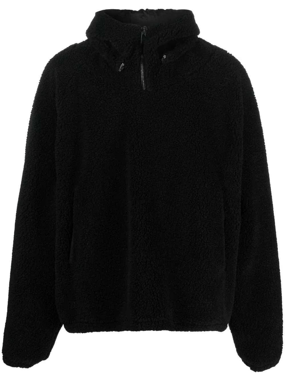 logo half-zip jumper black cotton logo patch to the rear round neck half front zip fastening long sleeves Made in Italy Composition Outer: Polyester 73%, Virgin Wool 27% Lining: Cotton 100% SIZE & FIT Model measurements Height 6 ft 2 in(1.87 m) Bust/Chest 36.22 in(92 cm) Hips 37 in(94 cm) Waist 27.95 in(71 cm) FittingInformation This piece fits true to size. We recommend you get your regular size Cut for a loose fit Made with a mid-weight fabric Washing instructions Dry Clean Only