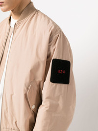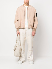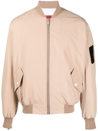 logo-patch quilted bomber jacket beige quilted logo patch at the sleeve baseball collar front zip fastening two side flap pockets long sleeves elasticated underband Made in Italy Composition Outer: Polyester 54%, Cotton 46% Lining: Polyamide 58%, Polyester 42% SIZE & FIT Model measurements Height 6 ft 2 in(1.89 m) Bust/Chest 37.4 in(95 cm) Hips 35.03 in(89 cm) Waist 27.95 in(71 cm) FittingInformation This piece fits true to size. We recommend you get your regular size Cut for a loose fit Made with a lightweight non-stretch fabric Washing instructions Machine Wash