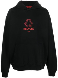 logo-print 'Recycle' hoodie black cotton logo print at the chest classic hood cuff sleeves ribbed cuffs straight hem Imported Composition Cotton 100% SIZE & FIT Model measurements Height 6 ft 3 in(1.91 m) Bust/Chest 37 in(94 cm) Hips 37.79 in(96 cm) Waist 28.34 in(72 cm) Measurement SLEEVE LENGTH 26.37 in(67 cm) LENGTH 28.34 in(72 cm) Shoulder Width 23.62 in(60 cm) FittingInformation This piece fits true to size. We recommend you get your regular size Cut for a loose fit Made with a mid-weight stretch fabric Washing instructions Hand Wash