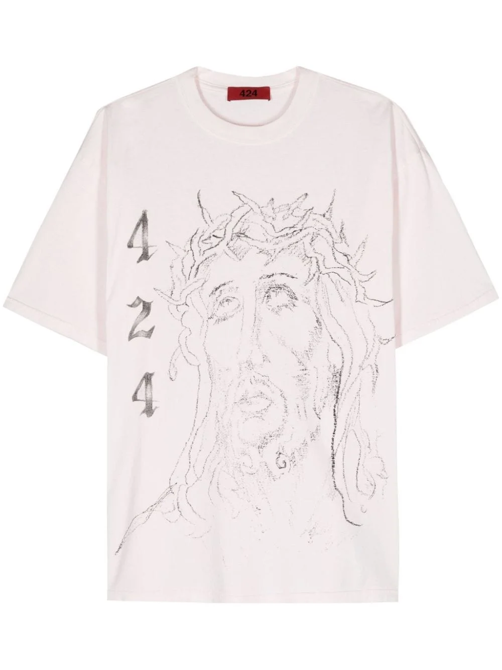 sketch-print cotton T-shirt Highlights - Light pink - Cotton - Jersey texture - Logo and sketch print to the front - Crew neck - Drop shoulder - Short sleeves - Straight hem Made in United States Composition Cotton 100%