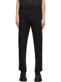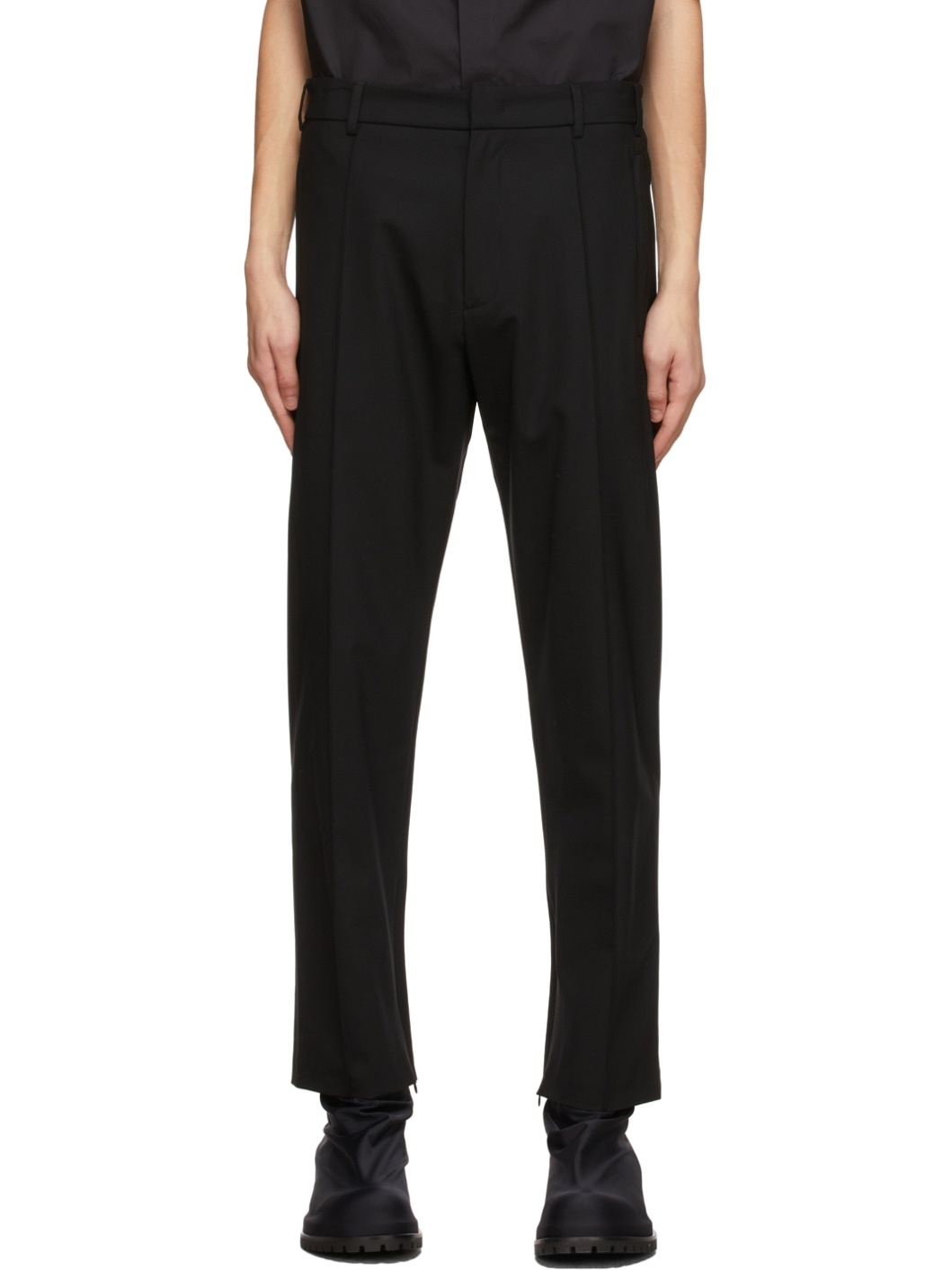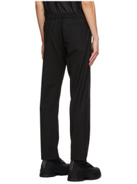 Straight-leg plain-woven virgin wool trousers in black. · Mid-rise · Three-pocket styling · Belt loops at partially elasticized waistband · Pinched seams at front · Concealed zip vent at cuffs · Zip-fly Supplier color: Black Body: 96% virgin wool, 4% elastane. Lining: 100% cotton.