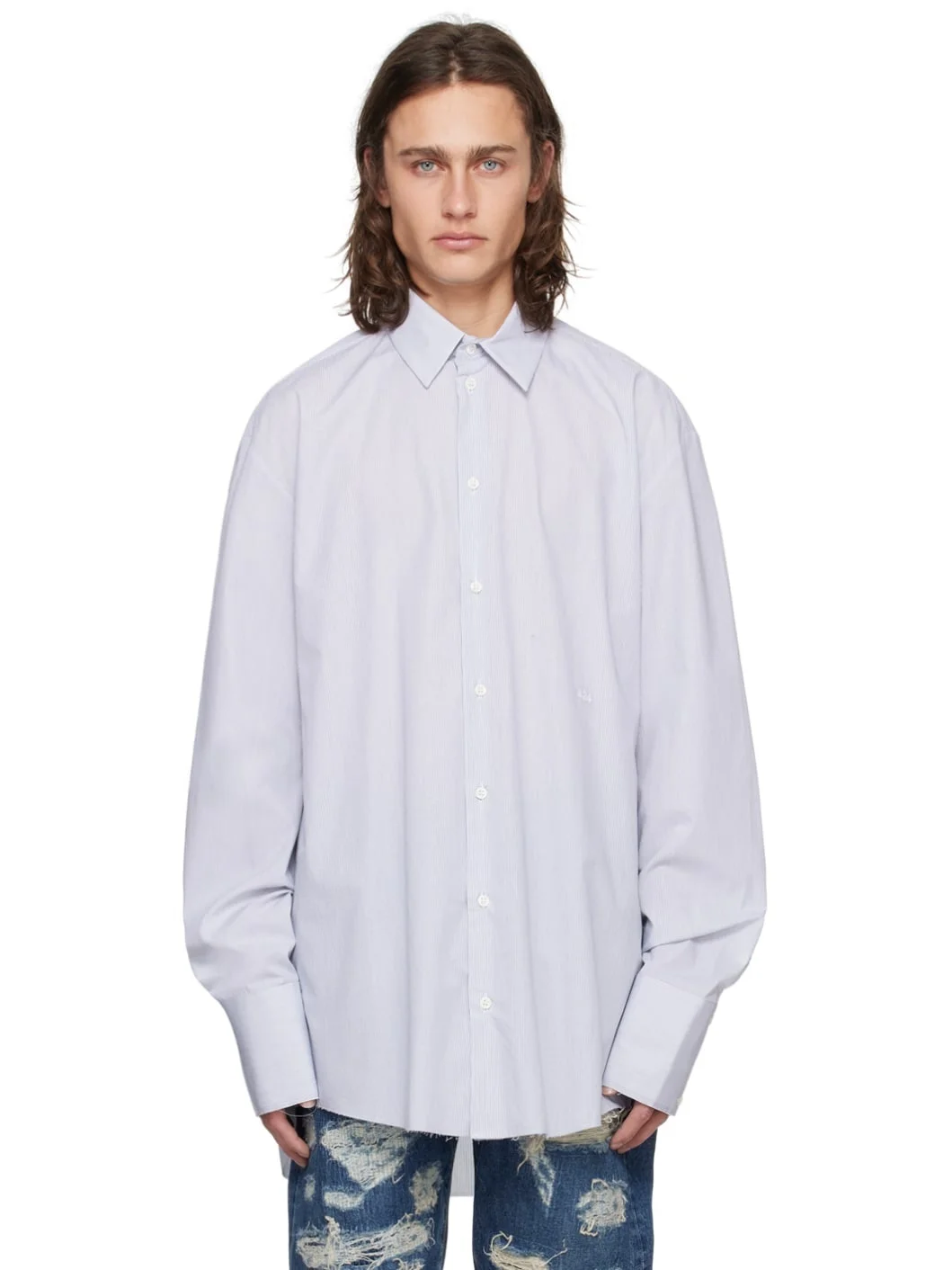 Cotton poplin shirt. Jacquard pinstripes throughout. · Spread collar · Concealed button closure · Logo embroidered at front · Raw edge at shirttail hem and cuffs · Four-button extended barrel cuffs Supplier color: Navy 100% cotton. Made in Italy 241010M192002