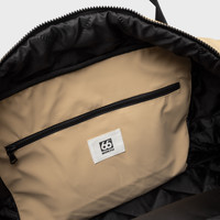 35L Sports bag made from leftover fabric. Description & Fit A 35L classic sports bag with a direct reference to our fisherman’s heritage, made from leftover fabric from our factories. Ideal for swimming and everyday commuting. The bag is made from a waterproof and durable fabric and the inside has a soft quilted lining. There are accessible, small pockets inside and a waterproof pocket on the outside with a reflective zipper. The handles are padded and the adjustable cross-body strap is detachable. Dimensions: H 30cm x L 45cm x W 25cm. Materials & Care Main fabric Garment - Lining 100% Recycled polyester Garment - Main fabric 100% Polyurethane