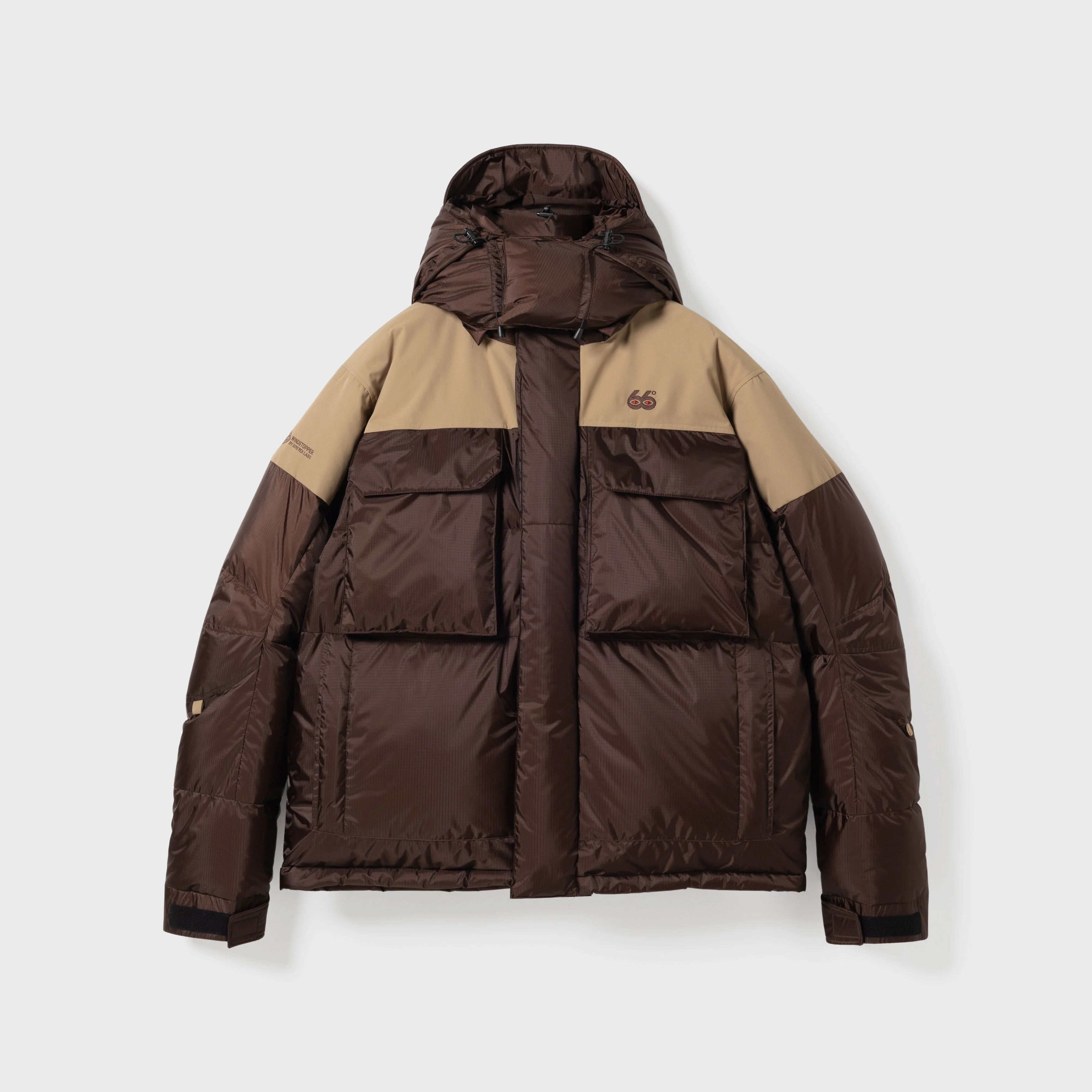 High-performance down jacket with GORE-TEX® WINDSTOPPER® face fabric and 800 fill-power insulation for optimal warmth-to-weight efficiency. Engineered for extreme Arctic conditions and inspired by the custom 2013 66°North suit worn by the first Icelander to summit Everest’s North Face. Description & Fit Introducing our collaboration with California-based performance eyewear and running brand District Vision. Built for extreme environments, this collaborative AW25 capsule line includes both proprietary lens technology and advanced thermoregulatory fabrics. The result: an Arctic‑grade exploration kit built to withstand whatever nature throws its way, without compromising on appearance. The capsule reflects District Vision’s ethos of mindful living fused with high-performance sportswear, while upholding 66°North’s nearly 100-year legacy of functional durability. Tindur is a high-performance down jacket engineered for Arctic conditions with GORE-TEX® WINDSTOPPER® face fabric. The jacket is insulated with 800 fill-power duck down for maximum warmth-to-weight efficiency, contained within a baffle construction that minimizes cold spots, optimizes loft retention, and quickly retains warmth during activity. The detachable hood is shaped for full coverage and helmet compatibility, while an extended collar provides additional wind protection. The jacket incorporates multiple storage options, including an interior microfiber-lined eyewear pouch designed to prevent lens scratches. A dual-zip front closure improves ventilation control and allows for layered use in extreme climates, and reinforced shell fabric with a durable water-repellent treatment ensures lasting weather resistance. Please note that the rope seen on the model is not included. Materials & Care Main fabric Garment - Insulation 90% Duck down, 10% Feather Garment - Lining 100% Recycled polyester Garment - Main fabric 100% Polyamide