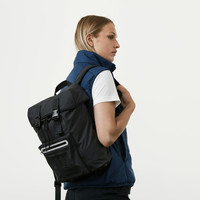 The 15L Backpack is a day bag for whatever the day brings. A durable coated waterproof fabric covers the sides, top, and bottom. Neoprene on the back lends comfort and breathability. On the bottom, a reinforced panel keeps belongings protected from scratches. A quilted interior lining make the 15L an ideal companion for cameras, computers, and whatever must arrive safely. A dual-buckle closure, internal drawstring, and front pocket with water-resistant reflective zipper provide additional utility. We’re proud to make every 15L Backpack from leftover fabric cuts that might otherwise go to waste. Our apparel is made from textiles and technologies that enable more time in the outdoors. With a bit of clever design, their remnants now do the same. One size fits all. The backpack's measurements are H40cm x W35cm x L10cm. DETAILS AND CARE Repairs for life. Item - Main fabric 66% PVC, 22% PE, 12% Polyurethane Suitable for Hiking Everyday / Commuting Cycling Style Bags