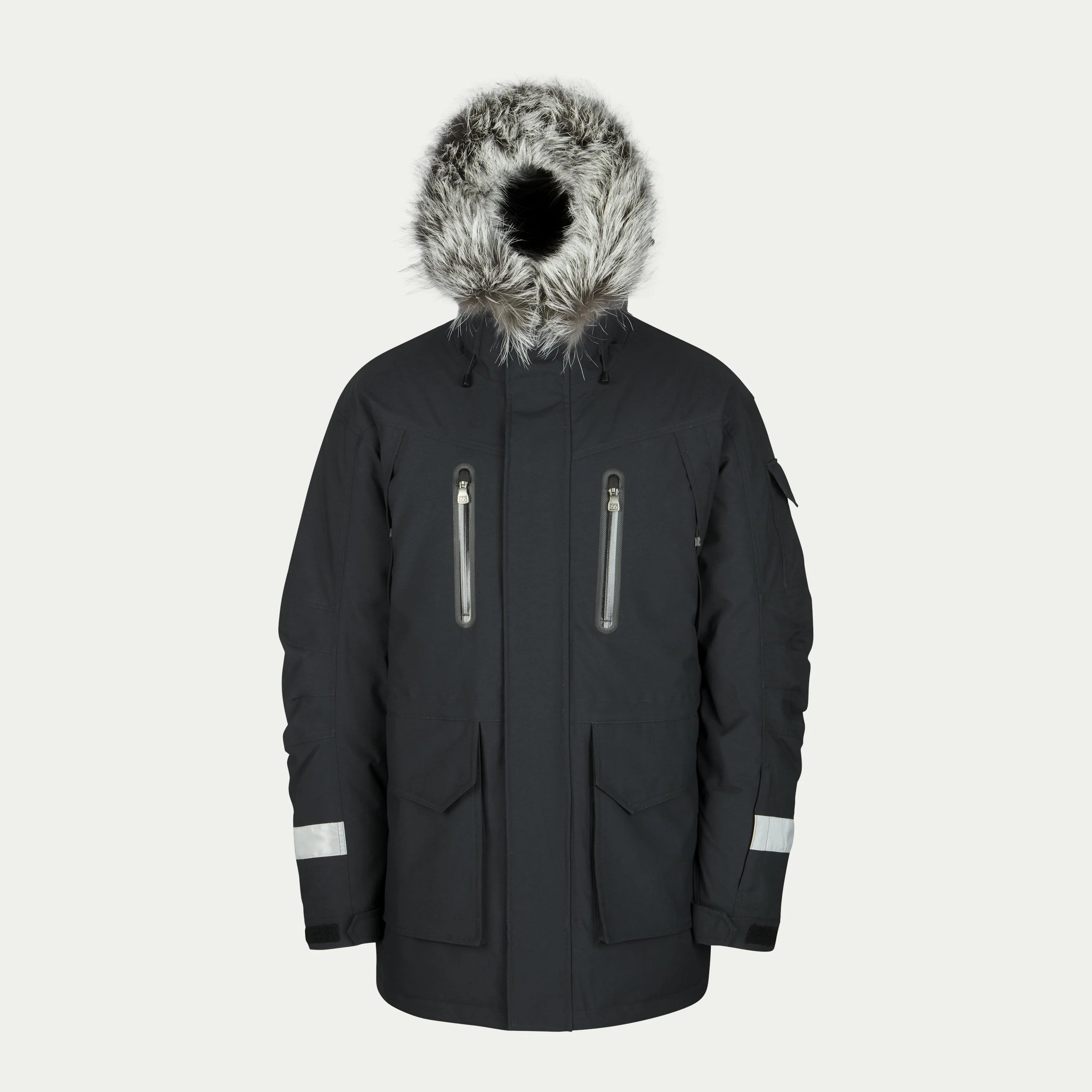 Around the solstice, northern Iceland experiences near 24-hour darkness, with temperatures falling as low as -30°C (-22°F). Jokla was created because it had to be. Jokla is a parka, and a tool. The exterior of Jokla is made from a ruggedized Cordura nylon that was selected for its extreme durability and abrasion-resistance. A water-repellent coating, taped seams, and coated chest zippers make Jokla waterproof. Finally, over a pound of premium 800-fill white goose down keeps out the cold. Adjustments on the hood, waist, hem, and sleeves allow for personalized fit (or a spot of extra weatherproofing.) Reflective flashes, fifteen pockets, and a removable fox fur ruff provide further utility. 66°North is respected by guides, explorers, researchers, and film crews for making the world’s best parkas. When Arctic photographer Benjamin Hardman must stand still for hours to get one perfect shot, he relies on his Jokla. All animal products used in 66°North products are ethically-sourced from audited suppliers. Our down comes from a long-time German supplier, who has been certified in accordance with the Responsible Down Standard (RDS) Downpass, and the STANDARD 100 by OEKO-TEX®. The fox fur used is VET-certified and comes from Saga Furs, a heritage Finnish fur supplier whose supply chain audits and animal welfare programs met our rigorous standards. Please be advised that if Jokla’s fox fur ruff should get soaked, it should be carefully let dry at room temperature. Please also be advised that temperatures that produce rain may be too warm for Jokla. Jokla is cut to be worn with a mid-layer and fits all genders comfortably, using adjustments on the hood, waist, hem, and sleeves to customize wear. Those between sizes should size down. Male model is 191 cm / 6' 3" tall and wearing size L DETAILS AND CARE Repairs for life. Outer Layer - Main fabric 76% Polyamide, 24% Polyurathane Inner Layer - Lining 100% Polyester Inner Layer - Insulation 800 Fill Power: 90% White goose down, 10% Feathers | Down (Goose) | RESPONSIBLE DOWN STANDARD Washing instructions Machine wash at or below 30º Tumble dry, normal Do not bleach Remove any fur from the garment before it is washed Shell CORDURA® Suitable for Everyday / Commuting Functionality Rugged-shell Wind-protection Water-resistant Style Parkas