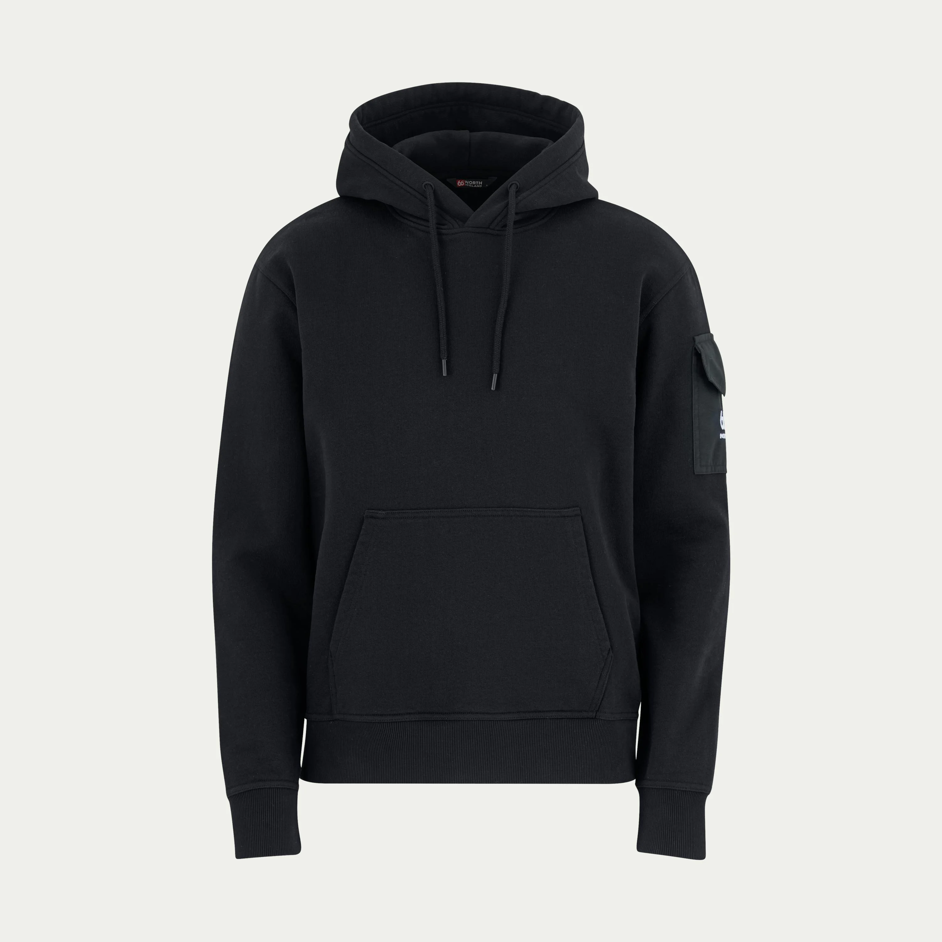 A classic hoodie in a heavy weight 100% organic cottan that takes design details from our Jokla Parka. A pocket on the left sleeve made from left overs from the Jokla production with an embroidered logo. We recommend for women to take one size down. DETAILS AND CARE Repairs for life. Style Sweaters