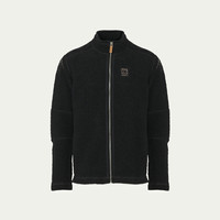 A men's wool sweater jacket with an embroidered abstract interpretation of our country's traditional sweater patterns. This is a technical jacket with a fleece lined collar and articulated elbows for added comfort. Sizes are small so we recommend going up one size. Male model is 189 cm / 6' 2" tall and wearing size L DETAILS AND CARE Repairs for life. Outer Layer - Main fabric 75% ull, 25% Polyester. Washing instructions Hand wash Dry flat Shell Wool Suitable for Skiing Everyday / Commuting Hiking Style Knitwear & Wool
