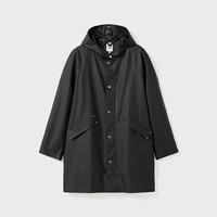 Skipagata hooded raincoat draws inspiration from a timeless classic raincoat that has stood the test of time. Originating in the 1940´s as a work coat, quickly became an everyday staple. Fabrics made from recycled plastic bottles means it is also perfect for the future. Completely waterproof, two pockets on the front and a hood make this raincoat perfect for any occasion. Made from a rain fabric with a phthalate-free formulation and a recycled polyester backing, resulting in an eco-friendlier fabrication. The polyester backing is made from recycled plastic bottles rather than new petroleum-based materials, which helps reduce waste going to landfill and saves natural resources. Skipagata hooded raincoat is a regular cut. Please refer to the size guide to find your precise fit. For women we recommend going one or two sizes down for wanted fit. Male model is 191 cm / 6' 3" tall and wearing size M DETAILS AND CARE Repairs for life. Item - Main fabric 81% Bio-Attributed PVC, 19% Recycled polyester Country of Origin Latvia Style Raincoats