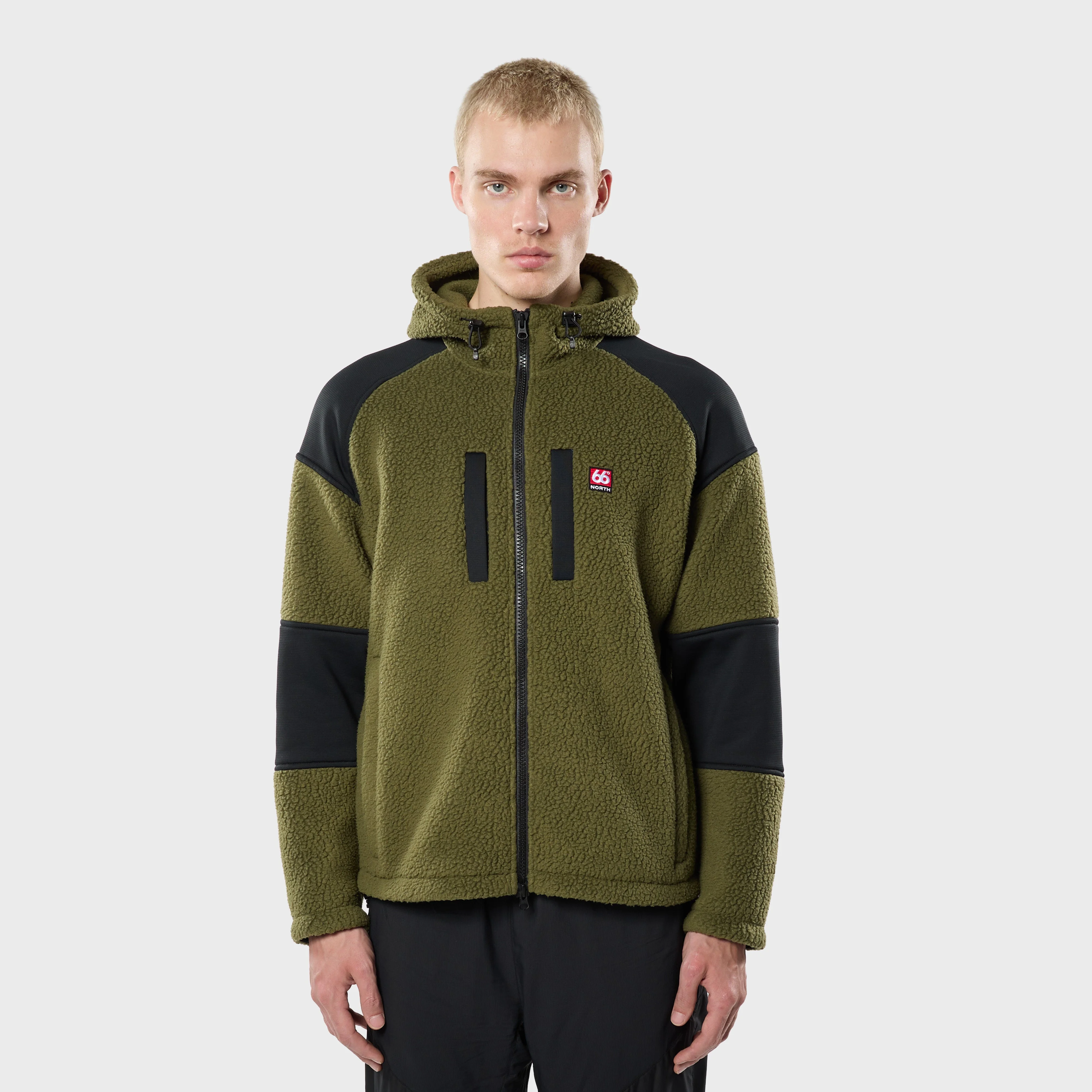 Tindur shearling fleece hoodie is 66˚North's most versatile mid-layer. Description & Fit Part of the Tindur system of technical pieces designed for performance in extreme cold, the Tindur shearling hoodie delivers dynamic warmth as a versatile midlayer or outer layer. Articulated shoulders and elbows are engineered to retain heat without restricting movement, while the hood adds extra protection when conditions demand it. In Iceland, it works effortlessly as a standalone outer layer during summer. Elsewhere, it becomes an ideal transitional piece for cool days in spring or fall. Made from Polartec® Thermal Pro® Shearling , the Tindur shearling hoodie features high-reach sleeves, seamless shoulders, adjustable drawcords at the hem and hood, two zipped side pockets, two zipped chest pockets, and integrated venting throughout. The hood and hem adjustments allow you to fine-tune fit and function, whether layering in extreme cold or wearing it on its own. Designed with a unisex fit to suit all genders, the Tindur shearling hoodie is built for adaptability across seasons and conditions. Materials & Care Main fabric Garment - Main fabric 100% Recycled polyester Garment - Second fabric 86% Recycled polyester, 14% Elastane