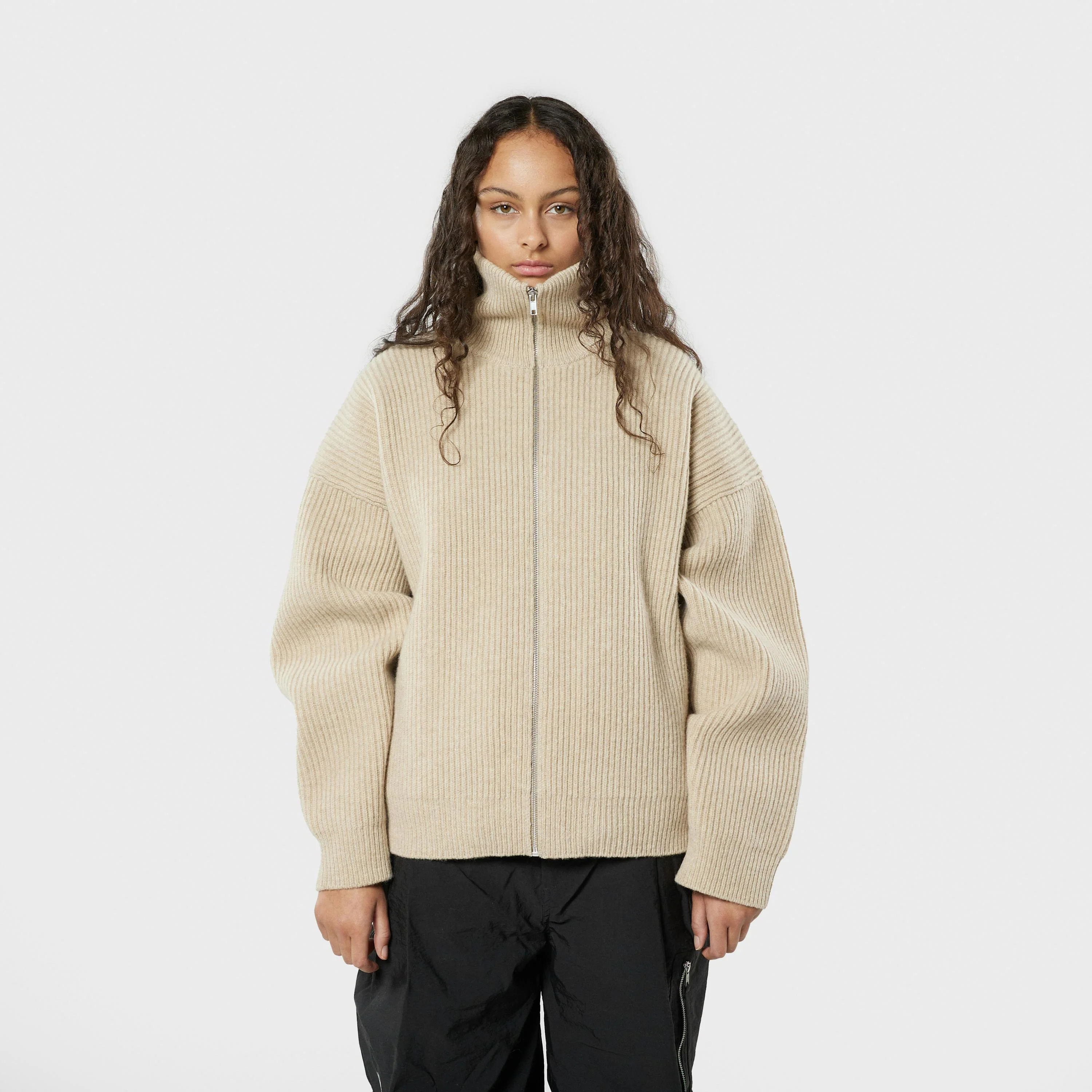 The Vonarstræti collection is crafted from soft and warm 100% wool, ensuring that each item can be recycled at the end of its life cycle. The non-mulesed, extra-fine wool is plied and boiled to create a chunky knit that protects the wearer from the elements and extends the garment's durability. Vonarstræti zipped sweater is oversized, warm and cozy with the signature Kria bird logo embroidered in tonal color on the back and a woven logo in the side seam. It has high neck and two side pockets. DETAILS AND CARE Repairs for life. Outer Layer - Yarn 100% Wool Functionality Zip Layering mid Country of Origin China Style Knitwear & Wool