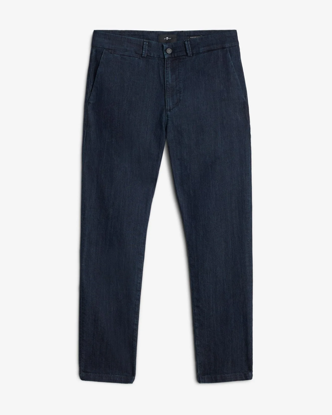 Fits like: A slim-fit chino, offering a clean, tailored silhouette that creates an effortlessly sleek and long-legged appearance. Feels like: Incredibly lightweight and soft, this Japanese denim offers airy comfort and effortless movement. The Details: - Dark Indigo wash - Zip fly and button closure - Welted back pockets - Tonal stitching FABRIC & CARE - 81% Cotton, 17% Polyester, 2% Elastane - Machine wash cold inside out with like colors, lay flat to dry - Imported