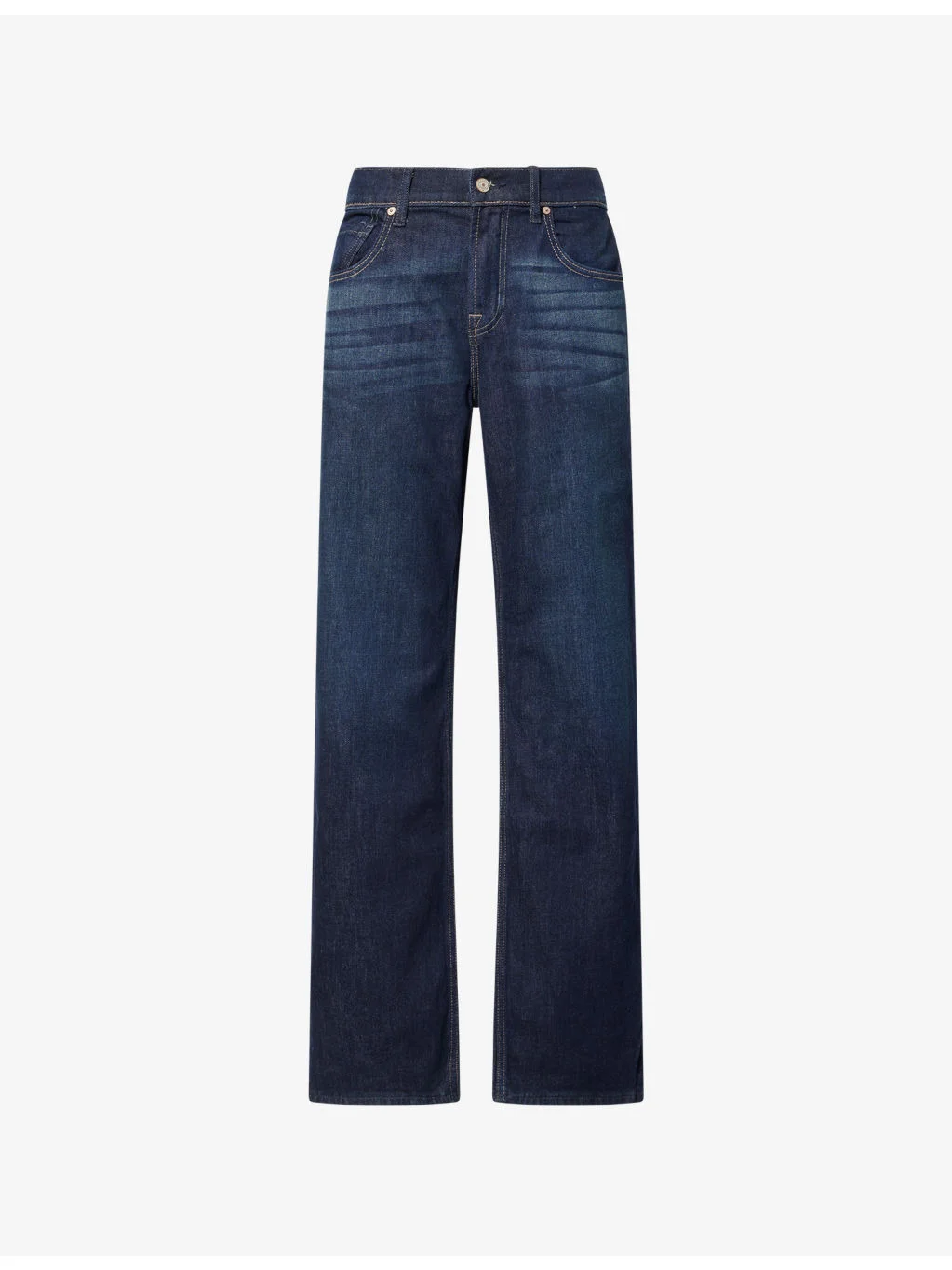 PRODUCT DETAILS - 7 For All Mankind denim jeans - 98% cotton, 2% elastane - Button and zip-fly fastening - Regular fit, mid rise, straight leg, belt loops, five pockets, silver-toned branded hardware, contrast stitching, whiskering, logo patch and tab at back - Machine wash cold - Size UK 30: rise 11in / 28cm, inside leg 34in / 86cm, leg opening 18in / 45cm - Model is 6ft 2in/1.88m and wears a size UK 30 - Midweight, slight stretch Ref: R04563672