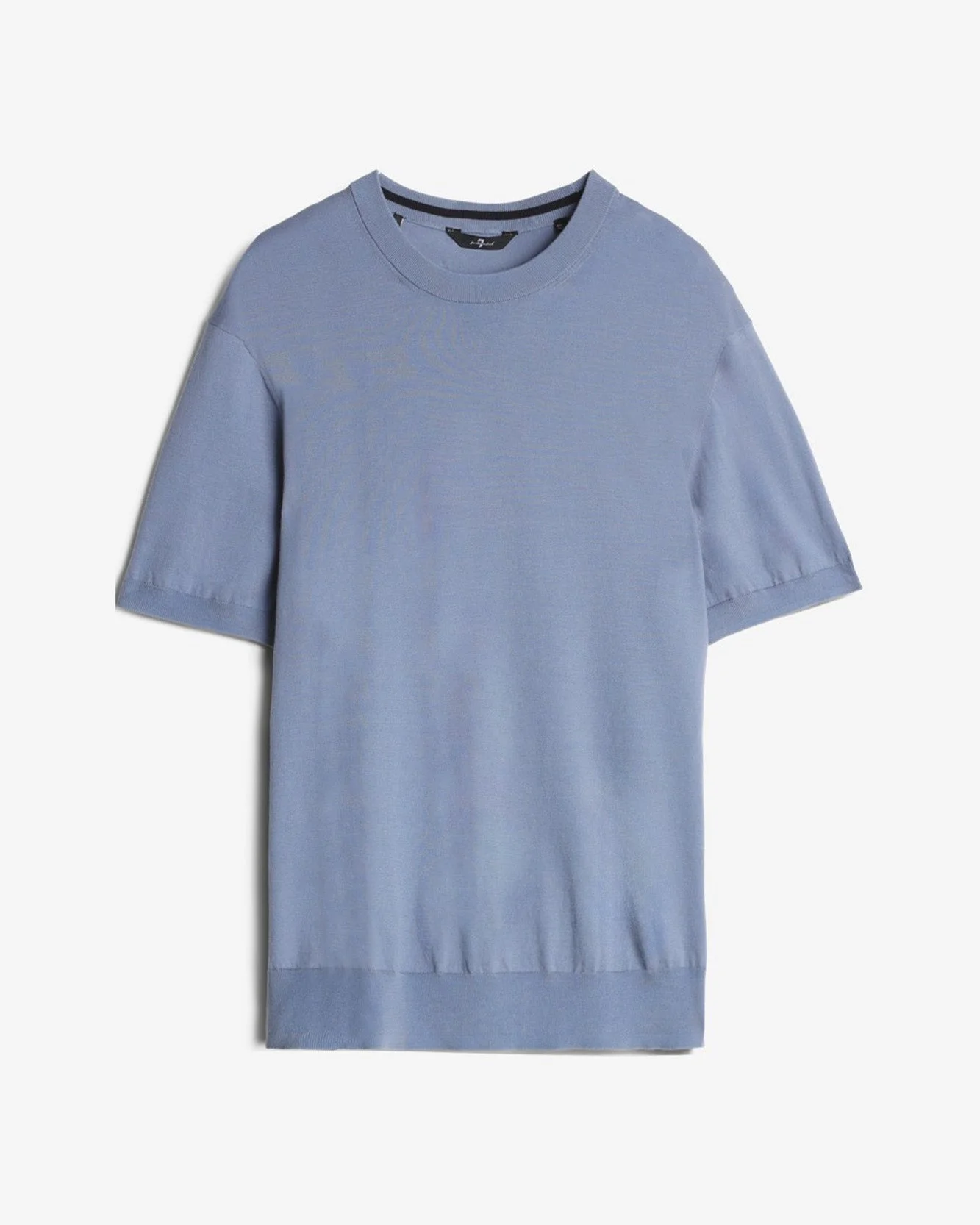 Classic Cotton Short Sleeve Sweater in Slate Blue