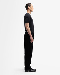 Fits like: Straight through the hip and thigh with a clean, easy drape from top to hem. Feels like: Classic denim, reworked with a velvety brush of softness. The Details: - Classic black wash - Classic zip closure - Tonal Back pocket flag label - Minimal hardware for a refined finish - Welted back pockets FABRIC & CARE - 71% Cotton, 27% Polyester, 2% Elastane - Machine wash cold inside out with like colors, lay flat to dry - Imported
