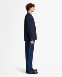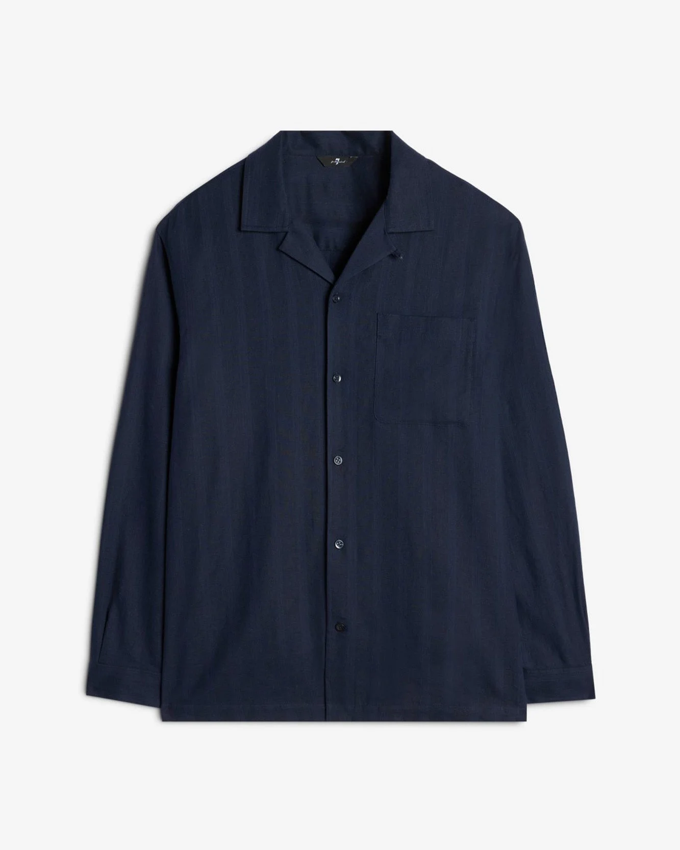 Fits like: A relaxed-fit lounge shirt with a straight hem and an easygoing silhouette. Feels like: Light, airy, and ideal for staying cool during spring to summer. The Details: - Classic camp collar with a laid-back vibe - Straight hem for untucked styling - Long Sleeve - Rich, navy hue FABRIC & CARE - 60% Cotton, 40% Linen - Machine wash cold inside out with like colors, lay flat to dry Imported